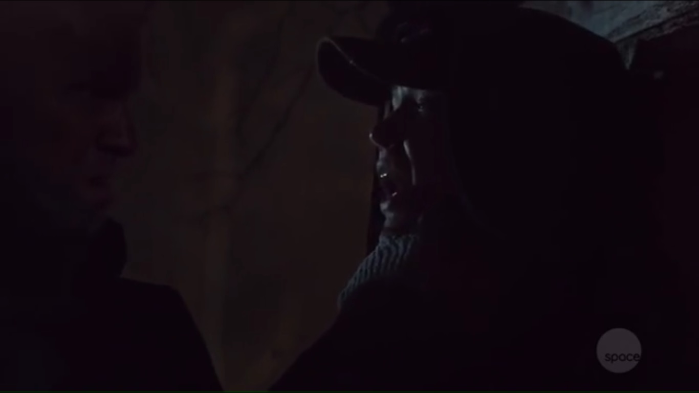 Back in the woods, Mud and the villager approach a cabin and find nothing, but then the creature approaches and kills the villager. He then begins to strangle Mud, but soon lets her go and retreats back into the woods. The other villagers soon join up with Mud and find the dead hunter’s body.