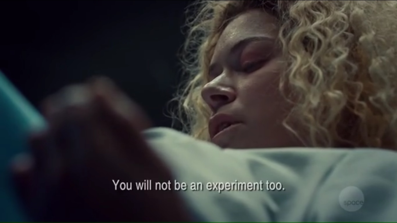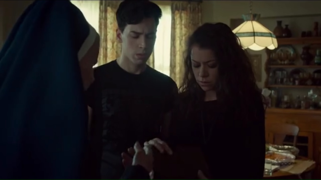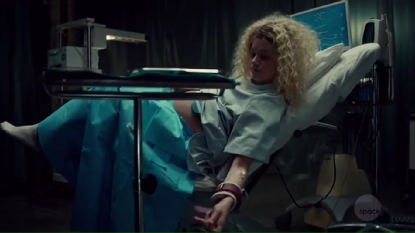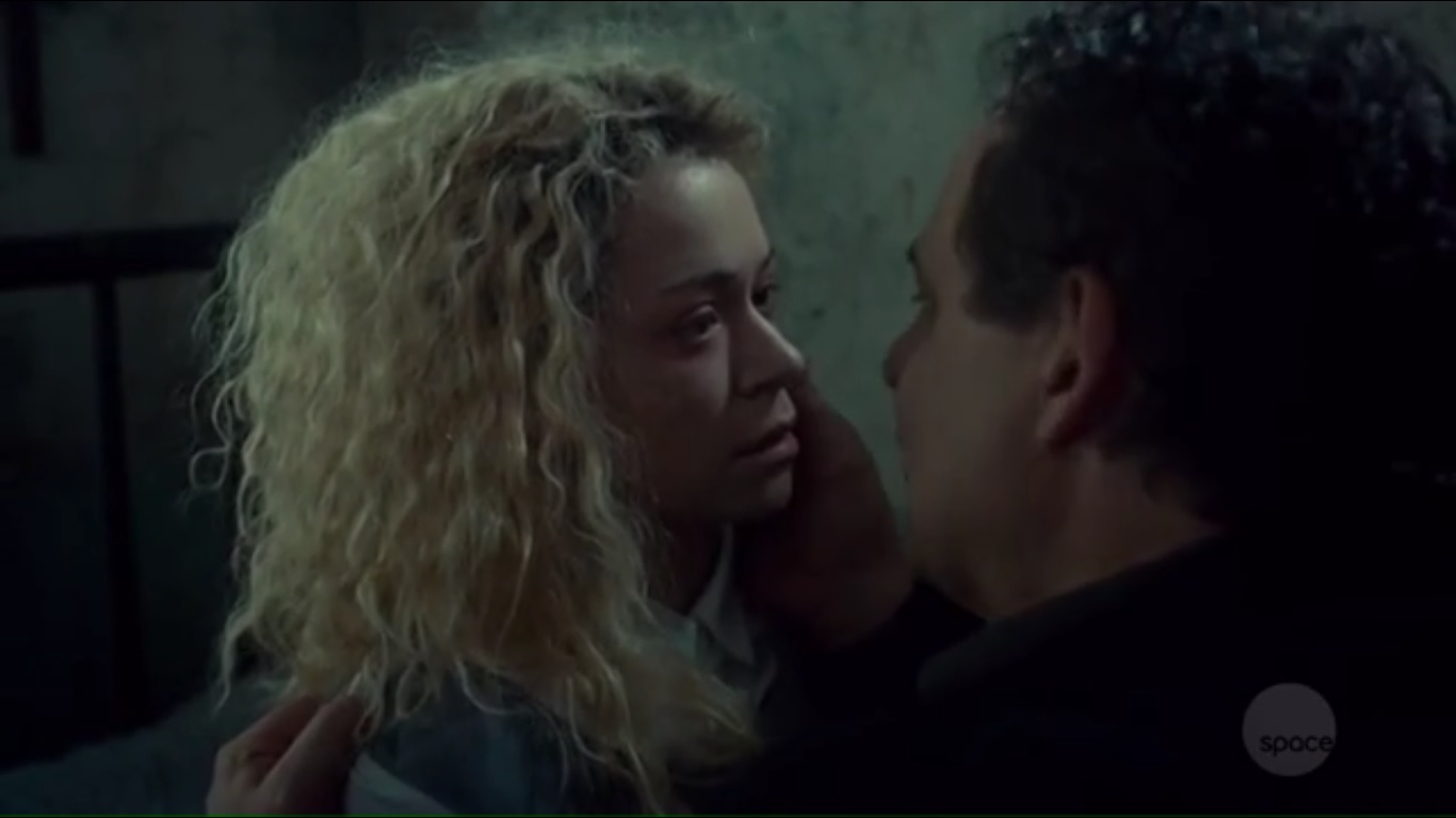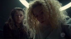 Clone Club assembles to discuss Gracie visiting Helena. Scott figures that Helena was kidnapped just as her babies are coming to term, so Westmoreland can take advantage of her children’s blood. And last time Gracie was involved, she sold the clones out to Virginia Coady. Since Cosima’s not on the island, obviously she doesn’t know what’s going on over there. But Rachel may.