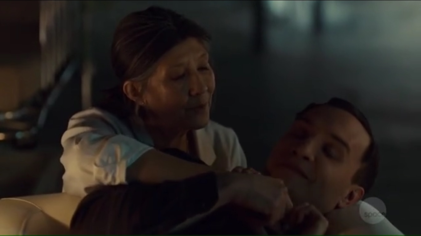 Helena speaks to her babies, telling them that they deserve better than her and that they won’t be an experiment. She’s prepared to set them free, and with that, she shoves the scissors into her wrist and begins to bleed out. Oh, but this episode isn’t over, so let’s keep watching.