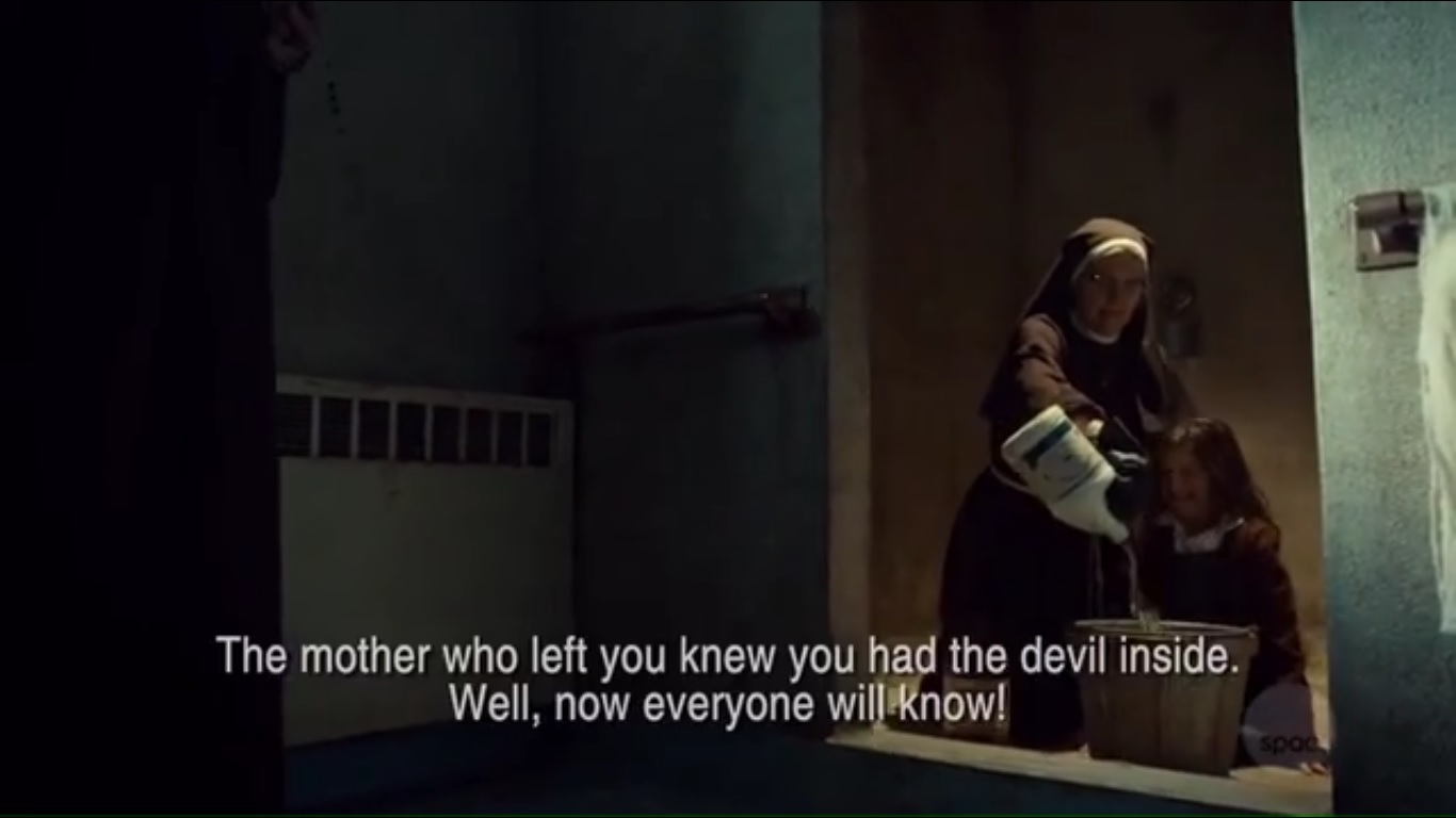 The episode begins with a flashback at the convent as a young Helena scarfs down chocolate in one of the offices. When a sister comes in and begins pleasuring herself, genius Helena decides to walk over to her. The sister slaps Helena and then later dips her whole face and hair in bleach. Helena begs Sister Irina for help, but Helena still ends up submerged and later locked in a close.