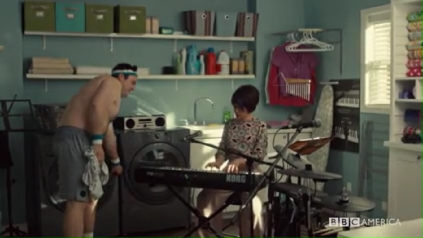 Later, Donnie walks in on and begins to perform a striptease while Alison practices on her keyboard.