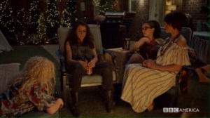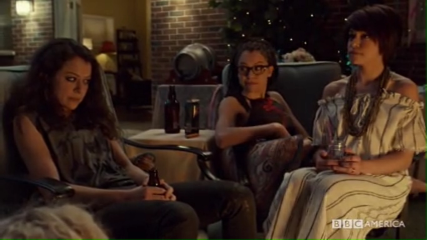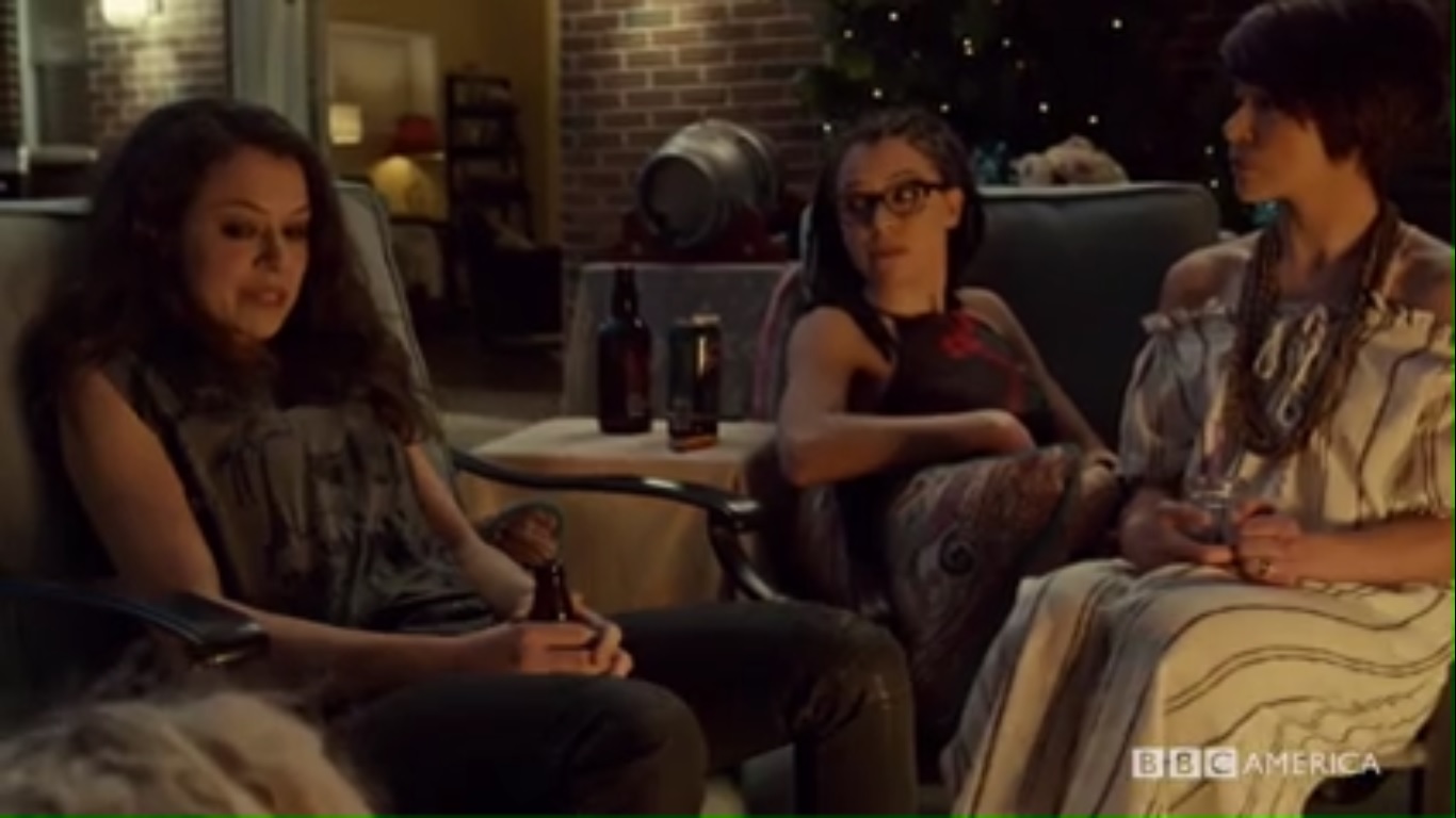 Sarah admits to Cosima, Alison, and Helena that yeah, she didn’t take her test. She has no idea what she’s doing, but carries around a bunch of mistakes and doesn’t know how to be happy. After all, there’s no one left to fight, sure, but she’s still a shit mother. Then Alison shares a story about how she raged at and scared her daughter.