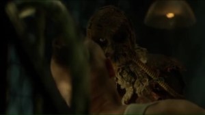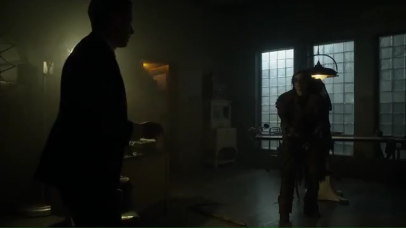 The episode begins with GCPD converging on Crane’s home, based on word from Merton. After finding evidence that Crane has been working on the toxin, Jim and Harvey head outside and find Grady outfitted in a scarecrow’s outfit. He yells to the two officers that the Scarecrow is coming. Sounds ominous.