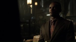 Back at GCPD, Lucius questions what Bruce was up to that got him injured and Alfred tells Lucius that Bruce fell through a skylight…but before that, he was rock climbing. Well, at least it’s not spelunking. But it’s clear that Lucius isn’t convinced.