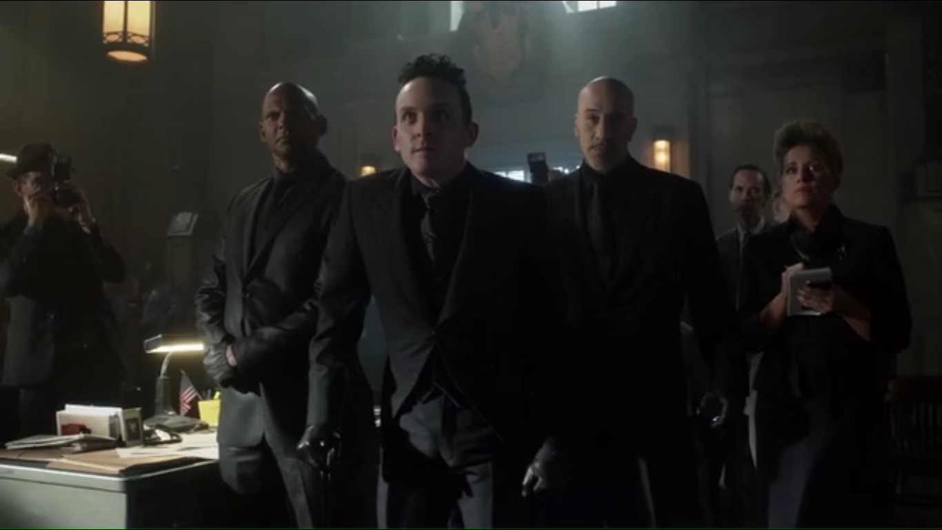 Penguin brings an entourage of the press to the GCPD to rail on Jim for having not captured Jonathan Crane, given that he created the fear toxin. Oswald proclaims that the GCPD doesn’t know how to handle crime and calls the department outdated and corrupt. He’s not entirely wrong.