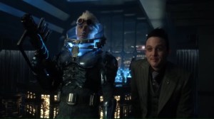 Penguin receives a visit from some men that Nygma sent. They rap out one of Nygma’s riddles, but Oswald…doesn’t find this amusing or even insightful at all. Oswald thinks this is just an act by Ed and that he’s really back to his old self, so he plans to wait for Ed at the pier and then surprise him with an ambush that all ends with Victor Fries freezing Ed again.
