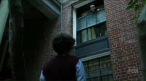 But then Oswald looks out the window, watches the kids playing, and eyes one in particular that’s about to set fire to some backpacks after being bullied. Oswald stops the boy, Martin, played by Christopher Convery, before he can burn the items and it turns out that the he cannot speak, so he draws a picture of fire instead. Oswald tells Martin that his enemies will know that what he did, so he can’t do that.