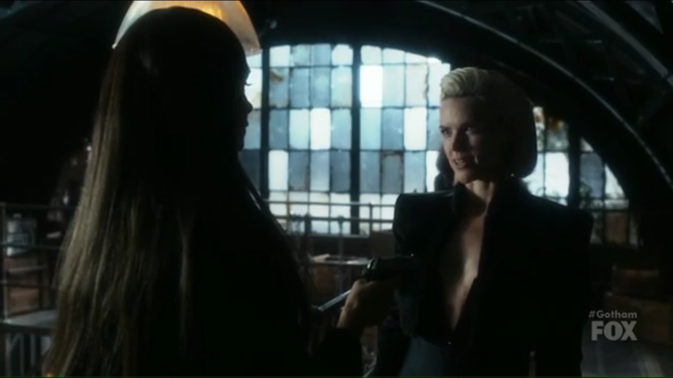 Jim meets up with Sofia, believing she’s the reason that he became captain. Jim insists that he’s not Sofia’s puppet, but Sofia calls them partners…and Jim just stabbed his partner in the back. Sofia calls this a mercy killing- that Harvey had to go. If Jim wanted a mobster’s help to dethrone Penguin, this was necessary. Jim wants Sofia gone, but she’s here to restore the Falcone name, so she’s not leaving Gotham.