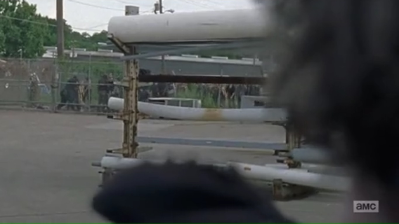 Inside, some Saviors pack up their weapons while Carol makes her way through the facility. As the Saviors prepare to leave, they’re gunned down by Carol, who was hiding in the ceiling. Just as she prepares to leave, other Saviors enter and pursue her.