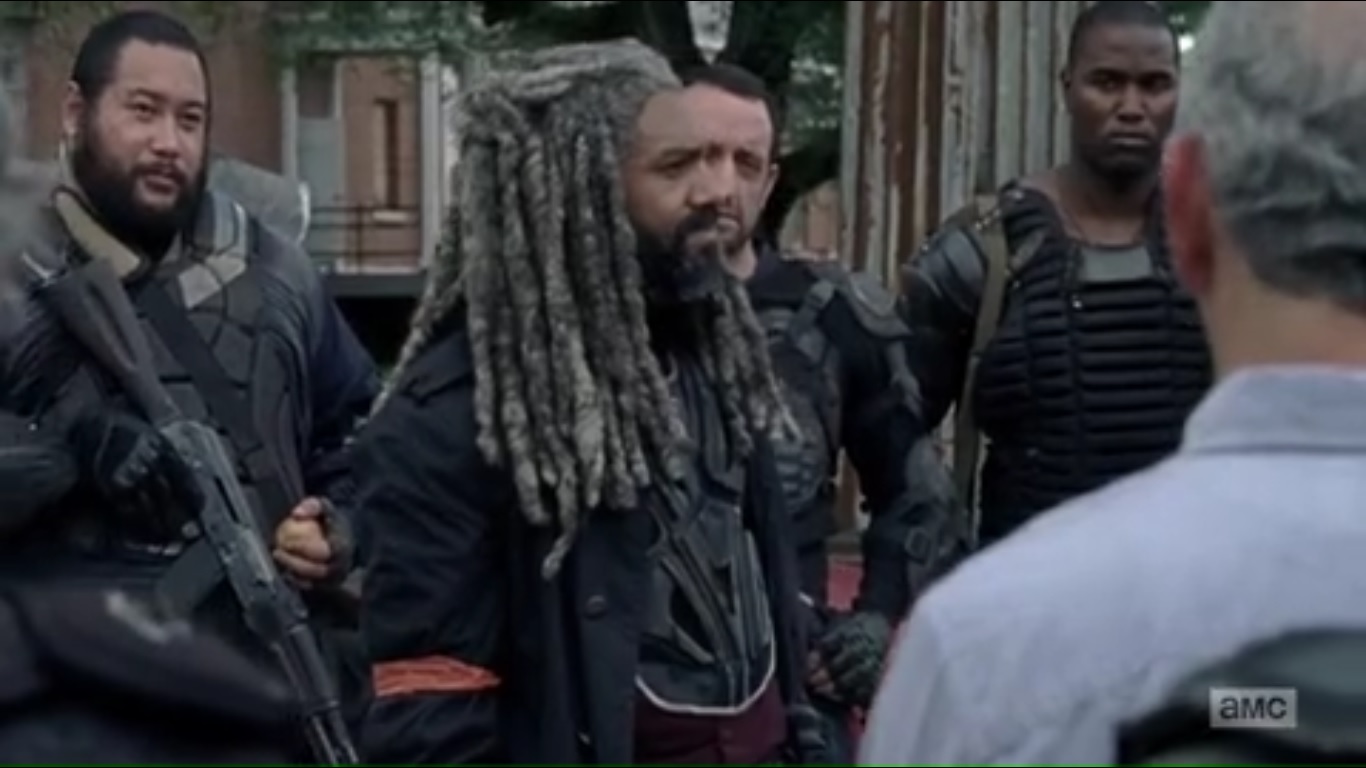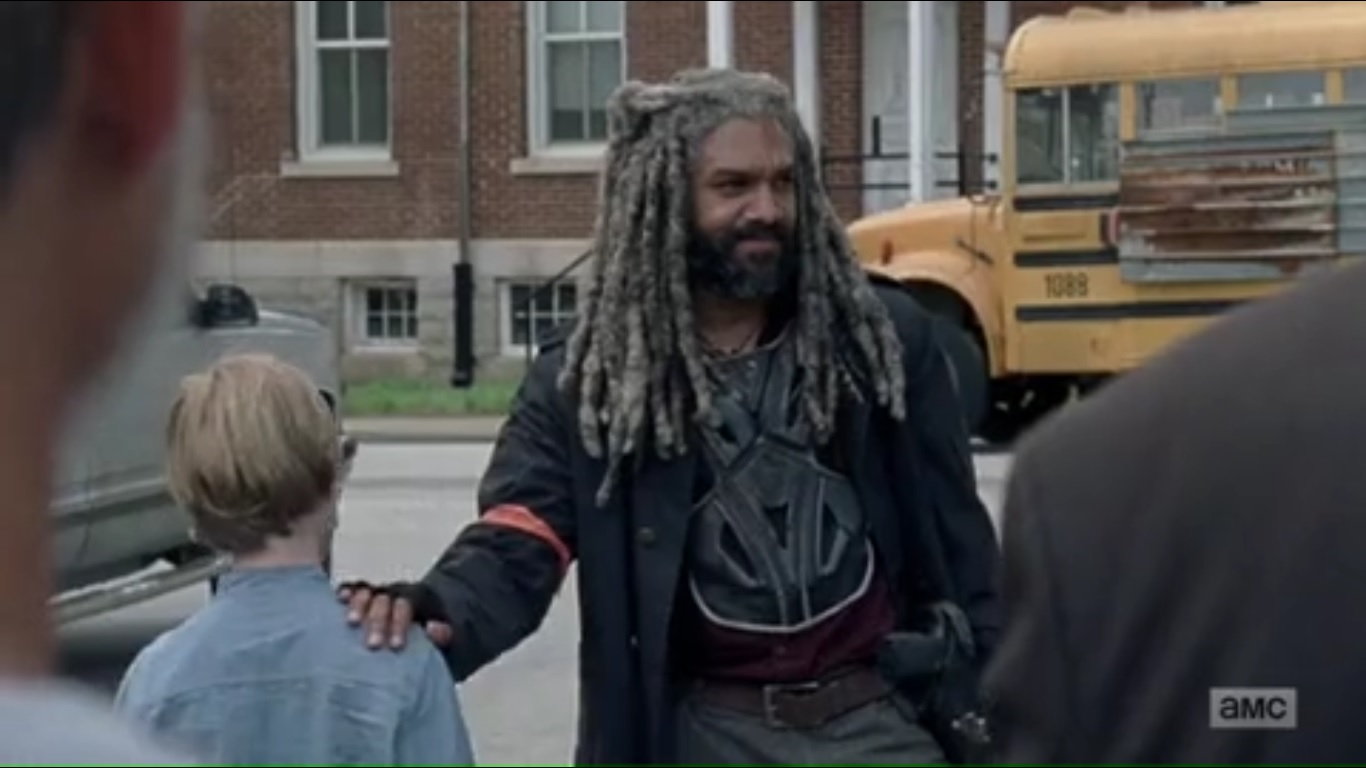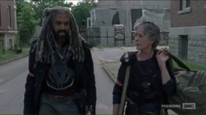 Carol, Ezekiel, and Jerry meanwhile go on when the pain in Ezekiel’s leg is too much to bear. He wants the two to let him go, but Carol, low on ammo, won’t let that happen. They arrive at the sewer drain from IT as Ezekiel fights off the walkers on his own, telling Jerry that he’s not his king or majesty- just some guy. Roll credits.