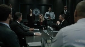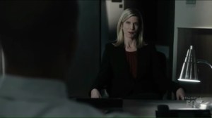 Back at Sentinel Services, an agent, played by Christine Dumford, from the Department of Justice arrives to talk with Jace about this field operation, which she says is a legal nightmare. She then brings up Dr. Campbell’s program that officially doesn’t exist. The legal ground is too shaky and the agent tells Jace to shut down, but Jace refuses. He promises to fight with everything he has if the agent fights, so Jace better suit up.