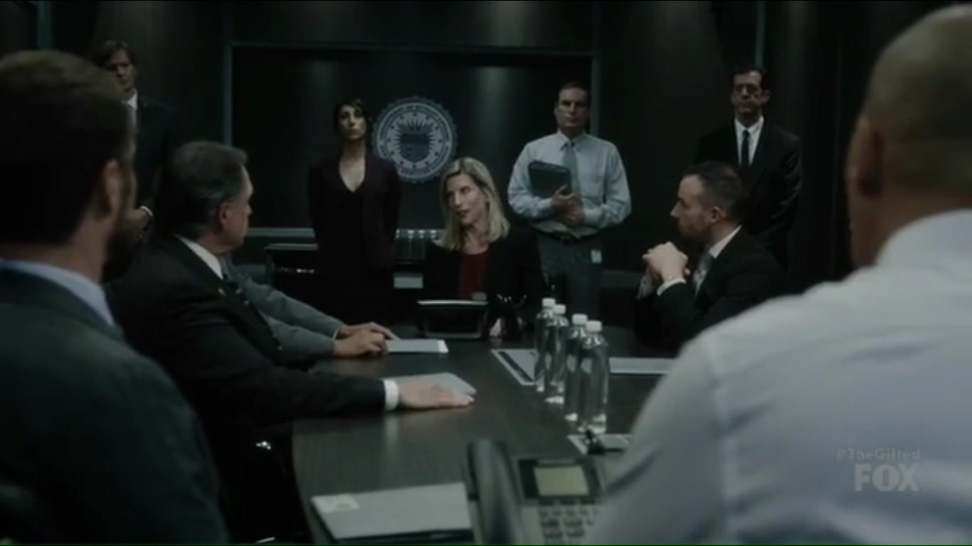 At Sentinel Services, Jace meets with Dr. Campbell to discuss the surveillance program’s progress. The underground, though, is staying ahead of the program, so Campbell wants a more direct approach. Surveillance alone doesn’t work, so he brings up being more aggressive with mutant assets, like placing them in the field. Turner doesn’t feel such subjects are suitable for undercover work.
