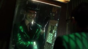 Nygma is arguing with his Riddler persona in the mirror, yelling that he’s in control, but the Riddler maintains that things were better when Ed was him. Riddler taunts Nygma with riddles and how he’s in love with Thompkins. Nygma punches and shatters the mirror just as Grundy enters, wondering if Ed is angry with the mirror…or himself.
