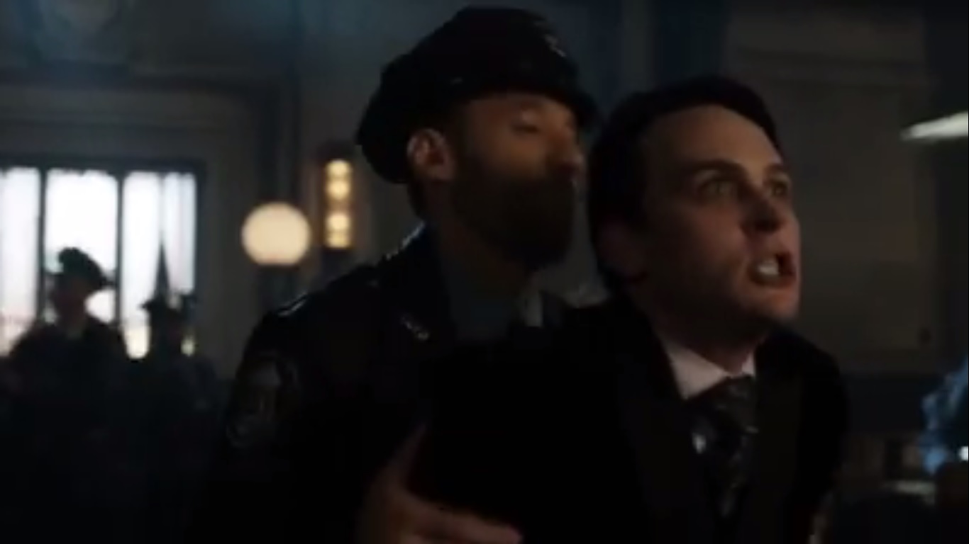 Instead, the officers toss Penguin out of the precinct. Jim addresses the precinct, reminding them that when he first arrived, Gotham and the GCPD were corrupt with criminals running the city. Today, the officers showed him different. He tells them that Penguin will be coming, but it’s time the GCPD showed Gotham what it’s capable of, so it’s time to suit up.
