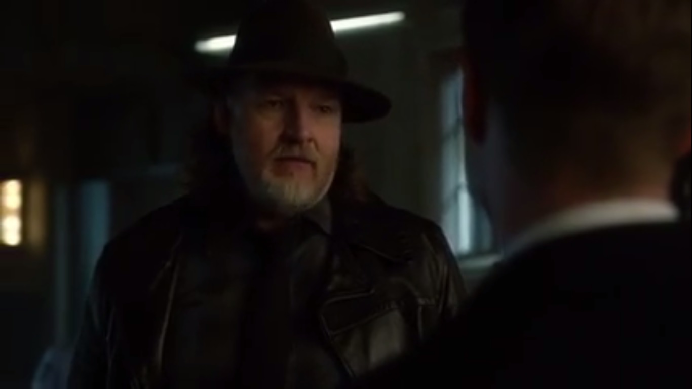 Jim is surprised to run into Don Falcone, who tells Jim that he’ll be taking Sofia out of Gotham. Same as Jim’s deal with Oswald, but Carmine knows that Oswald will honor the deal with him. Carmine tells Jim that he’s glad he didn’t kill him, as that would’ve been a kindness. He warns Jim that he has no idea what he’s brought to the city, but when he does, it will destroy him.