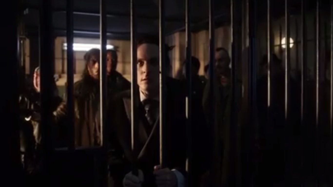 So Oswald is put in lockup among other criminals while the GCPD congratulates Jim finally winning the war against Penguin.