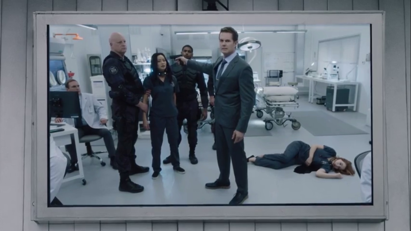 As such, Sonya and Clarice are brought in alongside Campbell, who is handed a sidearm. Again, Campbell tells the two to combine their powers. When Sonya implores the two to stand strong, Campbell fires and shoots her. Again, as he turns the gun on Clarice, he orders Andy and Lauren to face the sensors.