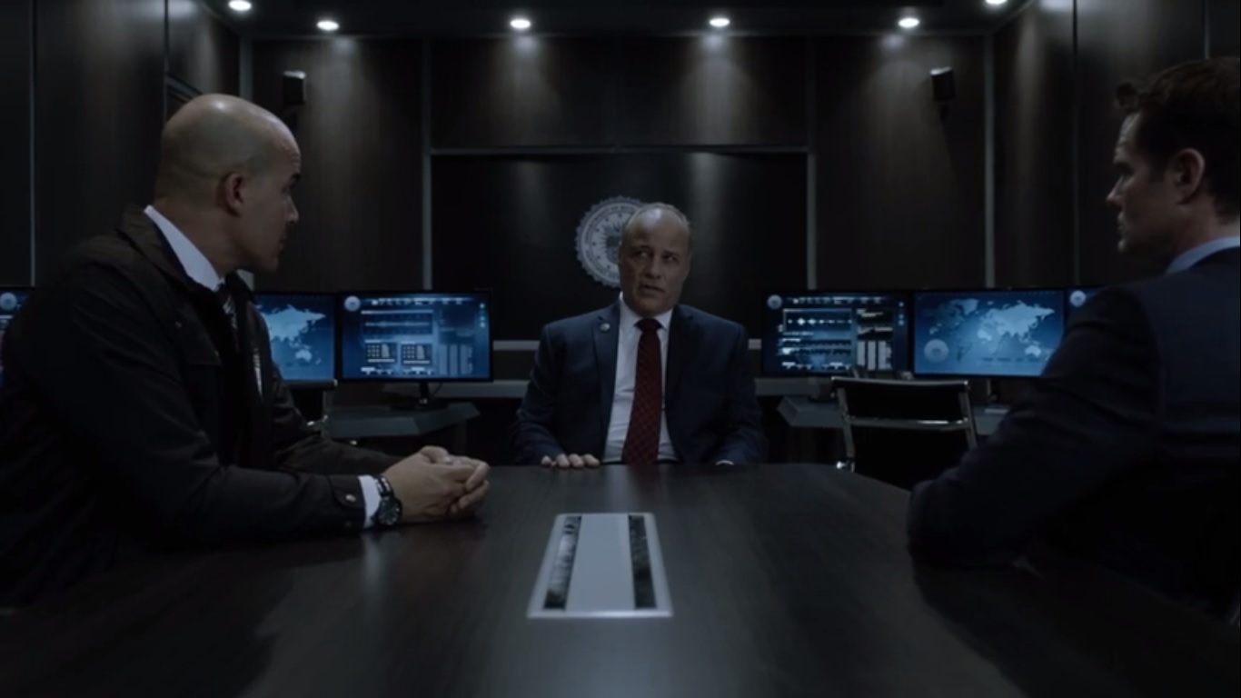 Turner and Campbell speak with Director Wolcott, played by Elliott Grey, about the benefits of the Hound program, which is more effective than the Sentinels. At the end of the day, people want answers instead of political correctness, and building off of the research into the Strucker family can lead to unlimited potential.