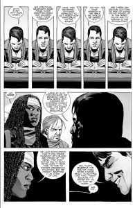 It’s a fairly standard process, the interviews. Like Douglas interviewing Rick when his group arrived in Alexandria- or Deanna on the TV version- it’s all about where they’ve come from, who they’ve encountered, but Lance takes it a step further by asking about particular customs. And it’s a nice change of pace because it is something to consider, especially when you think about groups like The Whisperers.