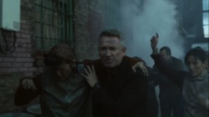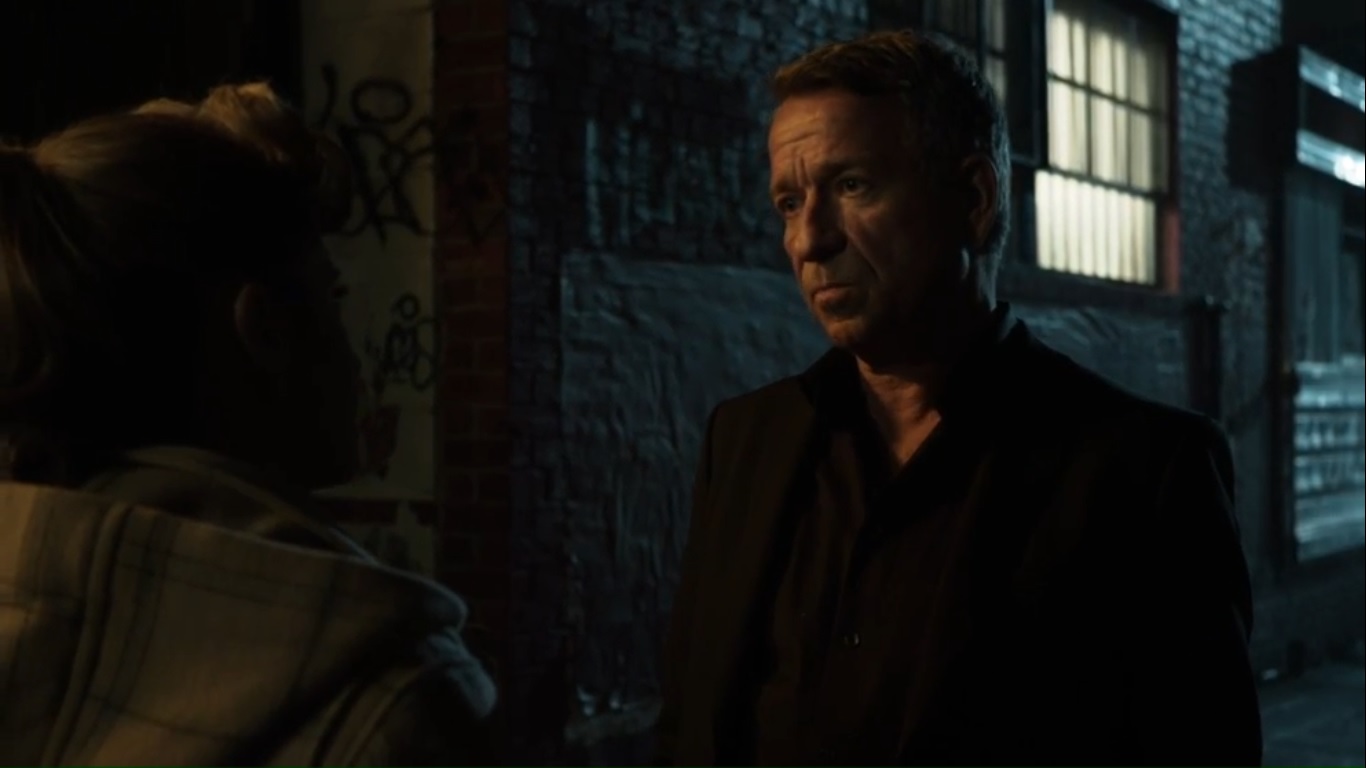 Alfred enters a bar and begins to beat the ever living hell out of Gil, but he soon finds himself outnumbered. When the perps gang up on him, Alfred finds himself saved by Bullock of all people. Hey, great continuity, as Harvey does bartend. He helps Alfred get a confession out of Ronnie.