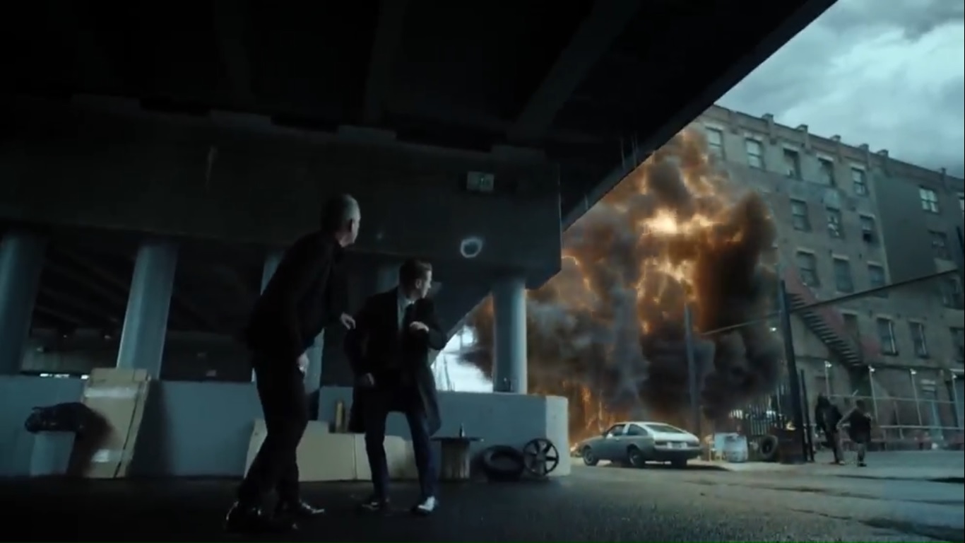 When firefighters later arrive on the scene, Jim tells the officers to set up a perimeter and interview witnesses. Lucius Fox also arrives on the scene to find the source of the blast.