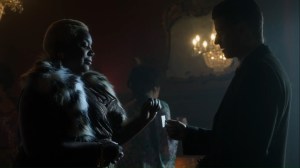 But the conversation is interrupted when some men nearby start fighting over Ivy’s attention. Tabitha breaks it up and orders Ivy to leave, which she does, but not before waving in Selina and Bruce’s direction. Barbara notes that she seems to recognize Selina, who then remembers that is indeed Ivy. Hopefully Selina asks Ivy why she’s been recast yet again.