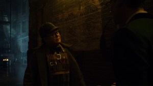 Lucius and Jim arrive at one of several shops that manufactures antique toys. They speak with Cosmo Krank, played by Chris Perfetti, and asks if he’s familiar with the airplane. He recognizes the model and has kinds like it in his store, but it’s been altered to carry a bomb. As is, Cosmo works at the store with his father, who is upstairs, so Jim requests that Dad be summoned.