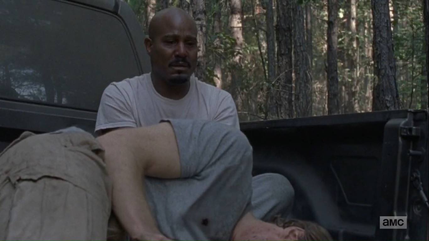 Carson and Gabriel’s one moment to rest is interrupted when they’re captured by Saviors, though Gabriel still believes that God is still leading the way. When Carson goes for one of the Saviors’ guns, he winds up shot and dead as the Sanctuary loses yet another doctor. And Gabriel? All he can do is weep.