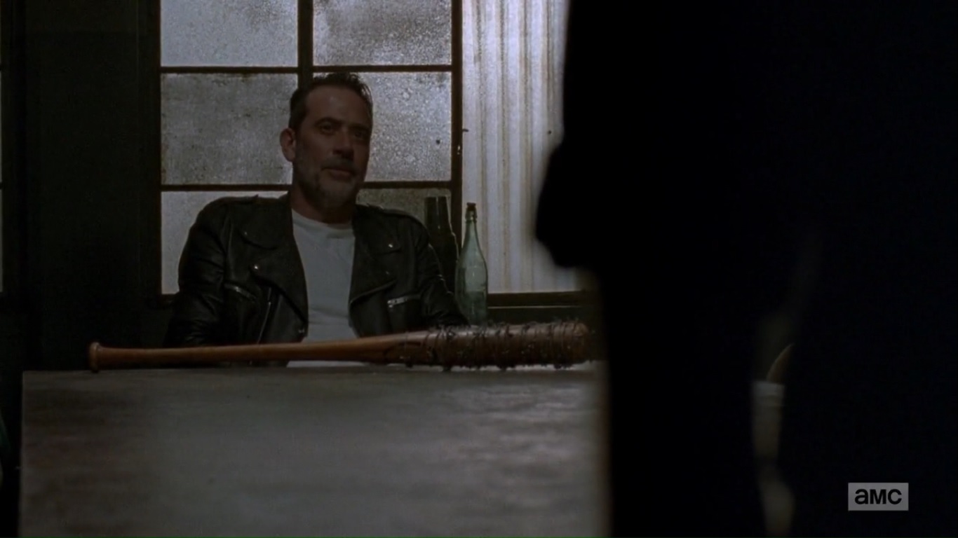 At the Sanctuary, Negan assembles his Saviors and reminds once you’re bitten or scratched by a walker, you become one of them. But what if that was used to their advantage. He strikes a walker until Lucille is messy with walker blood and guts. All that’s needed is a tough or big wet kiss from Lucille. And that’s what’s needed, the living join the walker club. Dead or alive, they will learn.