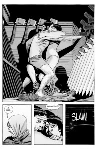 Here’s the problem. Now, this would be more evident on television versus a comic, but surely Sebastian and Kayla would hear the approaching walkers, no matter how hot and heavy things were between them. But no, they don’t, so Mercer must take out what we soon see is not just two, but a trail of walkers that came very close to interrupting make-out time.