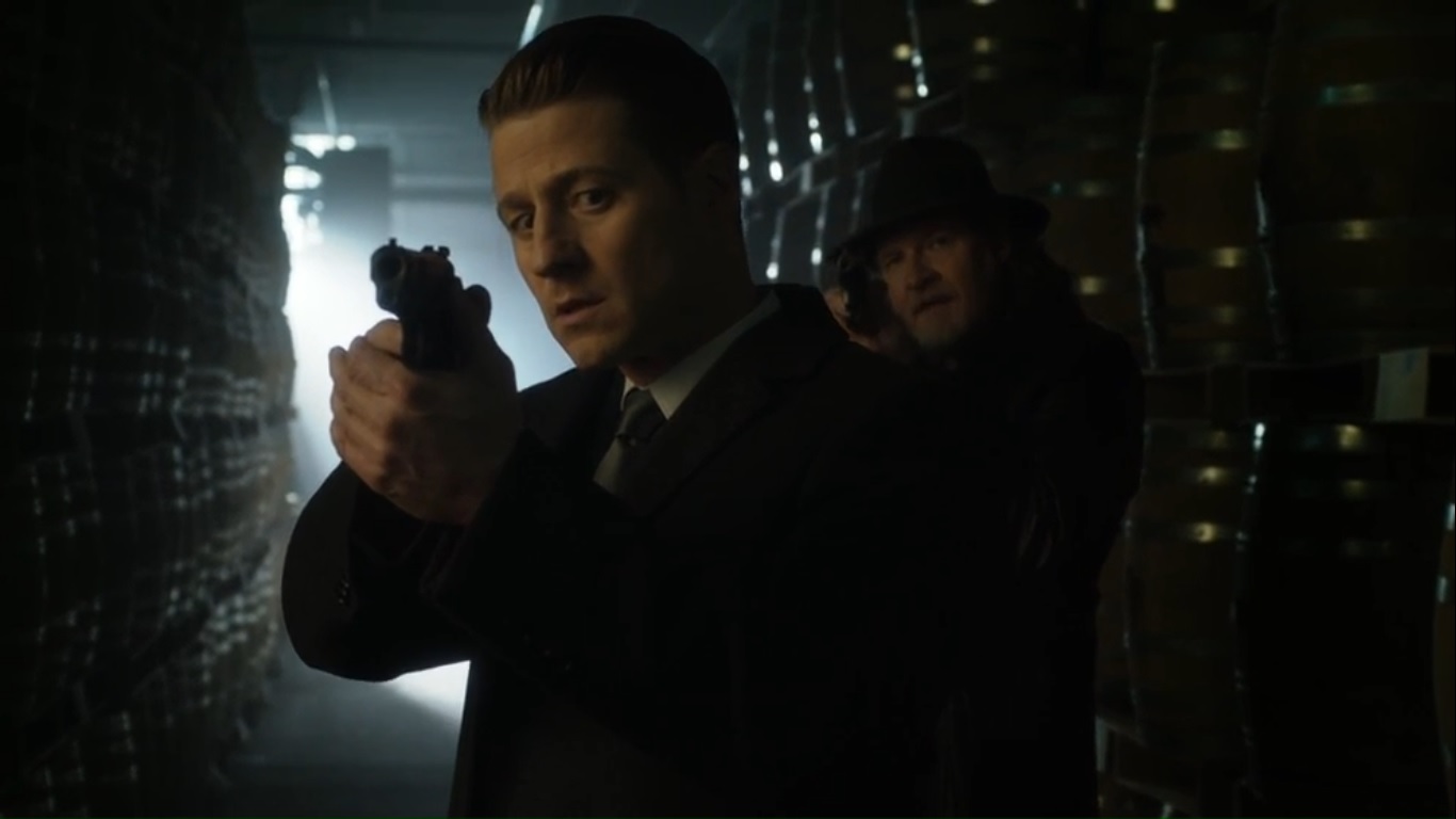 Bruce takes out another henchmen, but because Jim is trigger happy, he ends up shooting him. Luckily, Bruce had bulletproof armor. He survives and heads upstairs as Jim chases after him. Jim winds up on the roof, but finds his target gone. Get used to that, Jim.