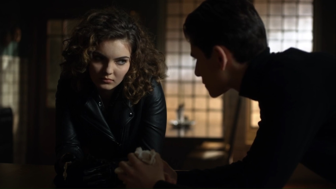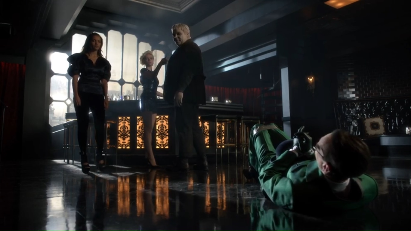 At the Sirens’ club, Tabitha finds Barbara still struggling with her migraines. Then they get the delivery of a lifetime when Butch brings in Nygma. He tells them that Nygma is working for Penguin, and after all that Ed did, Tabitha should be the one to kill him. Tabitha doesn’t want Butch to leave, but he’s off to find a way to get back to his old self.