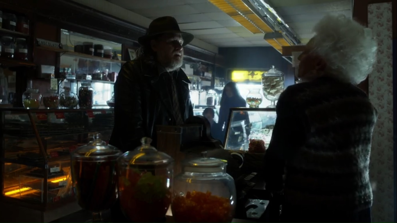 Harvey meets up the Scandinavian Skinner, a woman named Agnes, played by Waltrudis Buck. Harvey needs help finding Falcone’s eyes and ears. And he threatens to tell Agnes’ children about her history skinning people. She confesses, saying that Falcone only trusted the bookkeeper who smelled of fish- The Penguin, who apparently vanished.