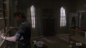 As the dead make their way towards the mansion, another wounded resident, the one who was speaking to Maggie a few scenes ago, reanimates, but ends up tripping down the stairs. Walkers are clumsy like that. But the walkers are soon ready while everyone sleeps completely unaware. Okay, if they sleep that deeply and left the door so walkers or anyone else could get in, these people deserve to be bitten.