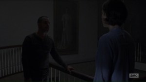 And this leads into my negatives with the show. First off, let’s talk about the Saviors. They don’t have a home field advantage here. Yet when all of the lights go out, they walk towards the mansion, knowing that the survivors are there. They don’t even fire off a few shots in the darkness in the hopes that they get lucky or fall back.