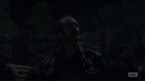 Though he thought Negan just ran into some walkers, everyone soon realizes that the Saviors are making the survivors kill their own. One resting resident realizes that he’s next to die, so he asks one of the others to put him down.