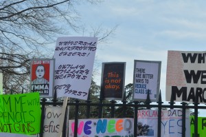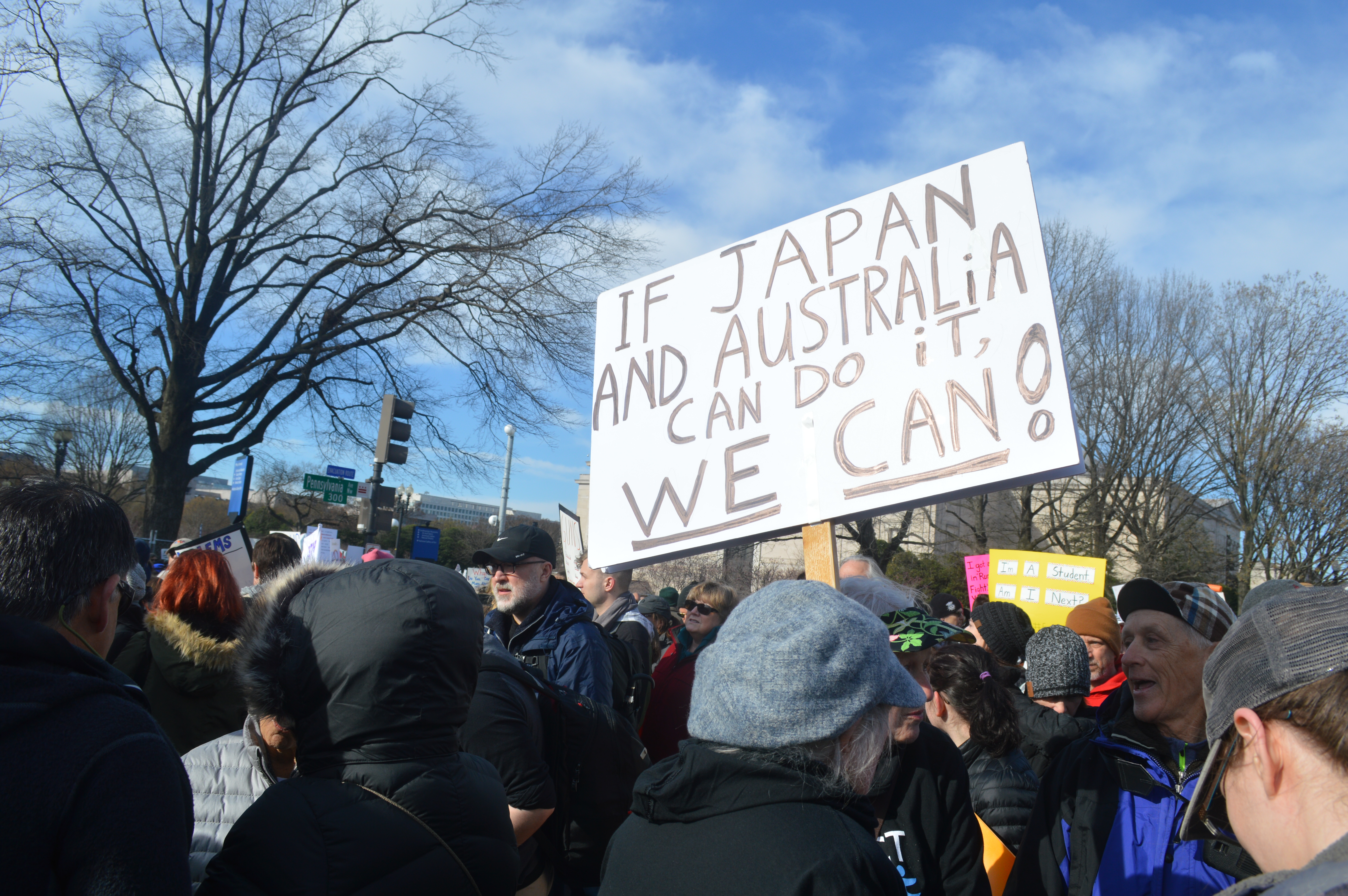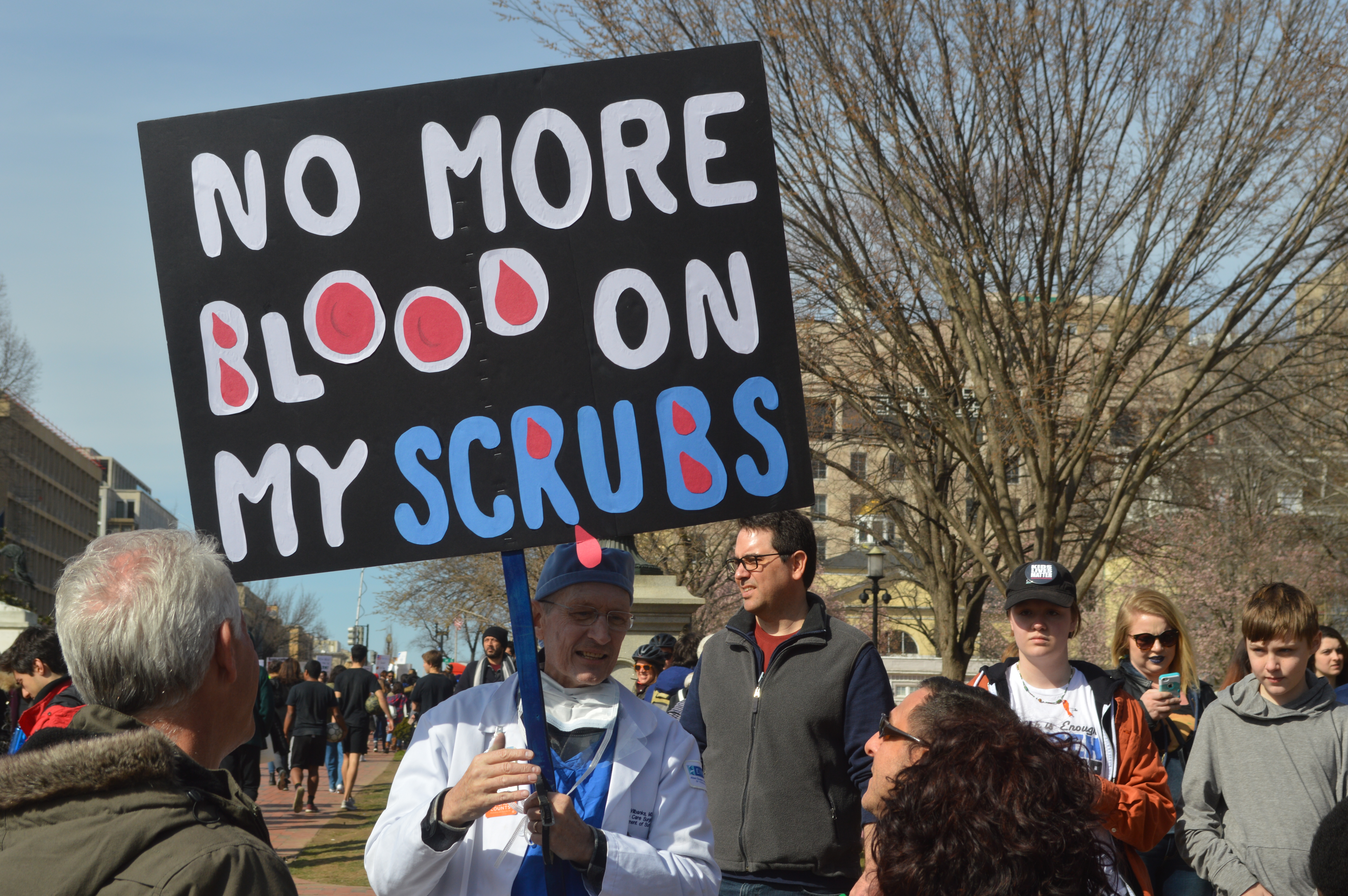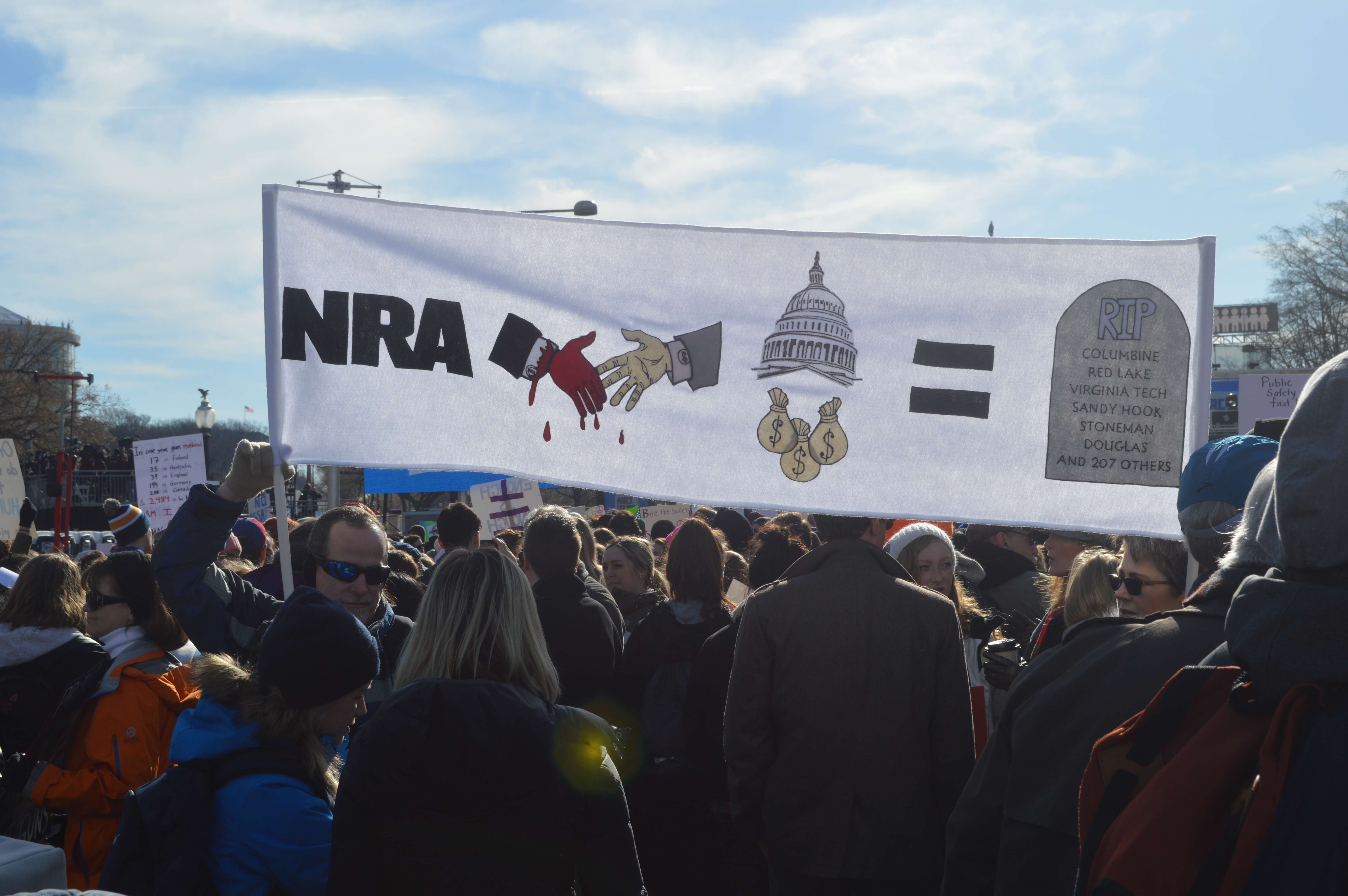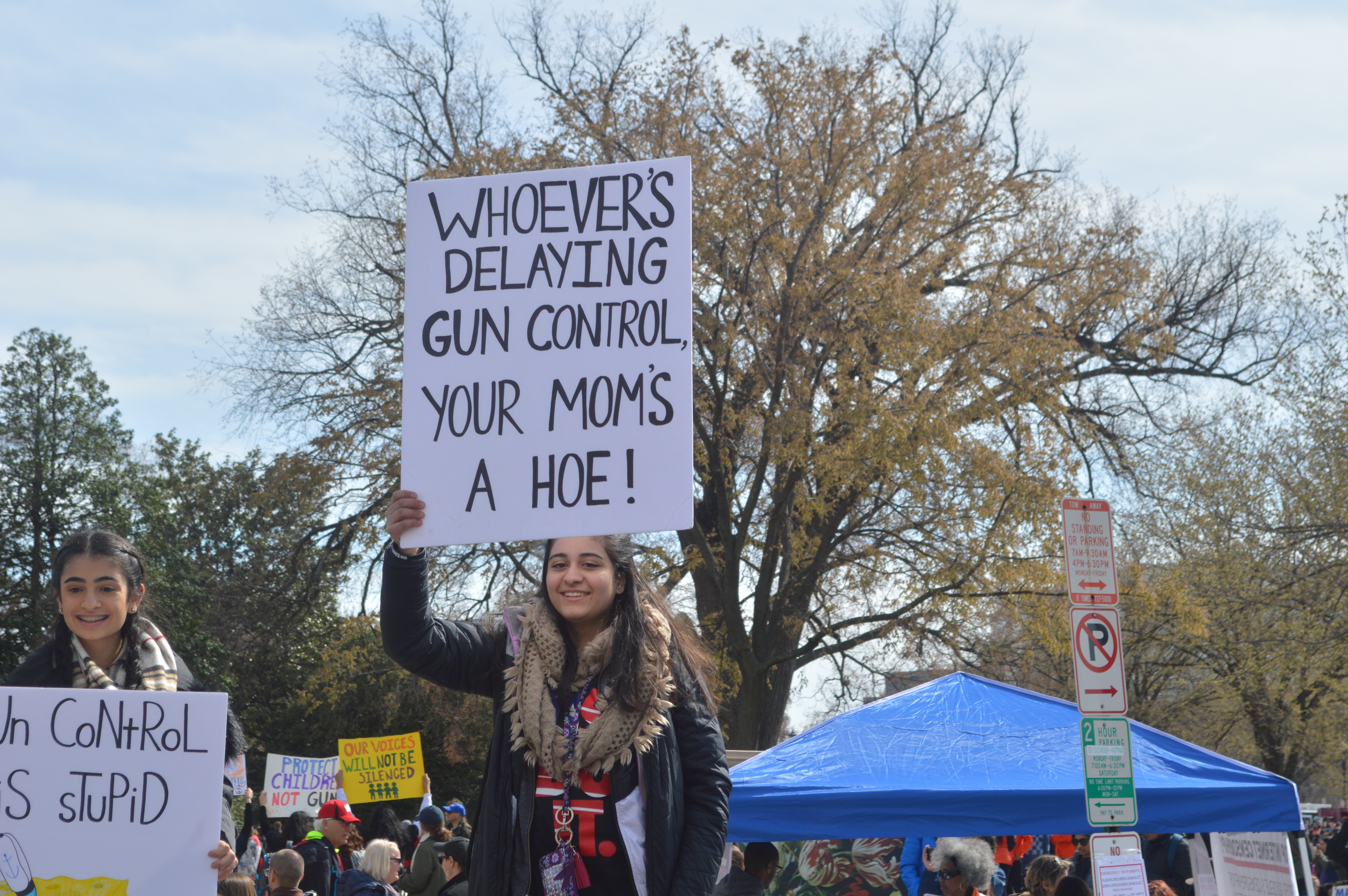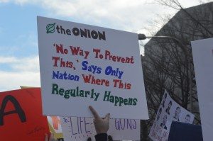 This was another noteworthy sign that got a lot of attention, drawing a correlation gun violence and women’s issues.