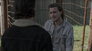 Jared ambushes Morgan and tries to stab him with the spear, but Morgan knocks him away and locks him in the room. He then holds Jared close to the gate while the walkers feast on him.