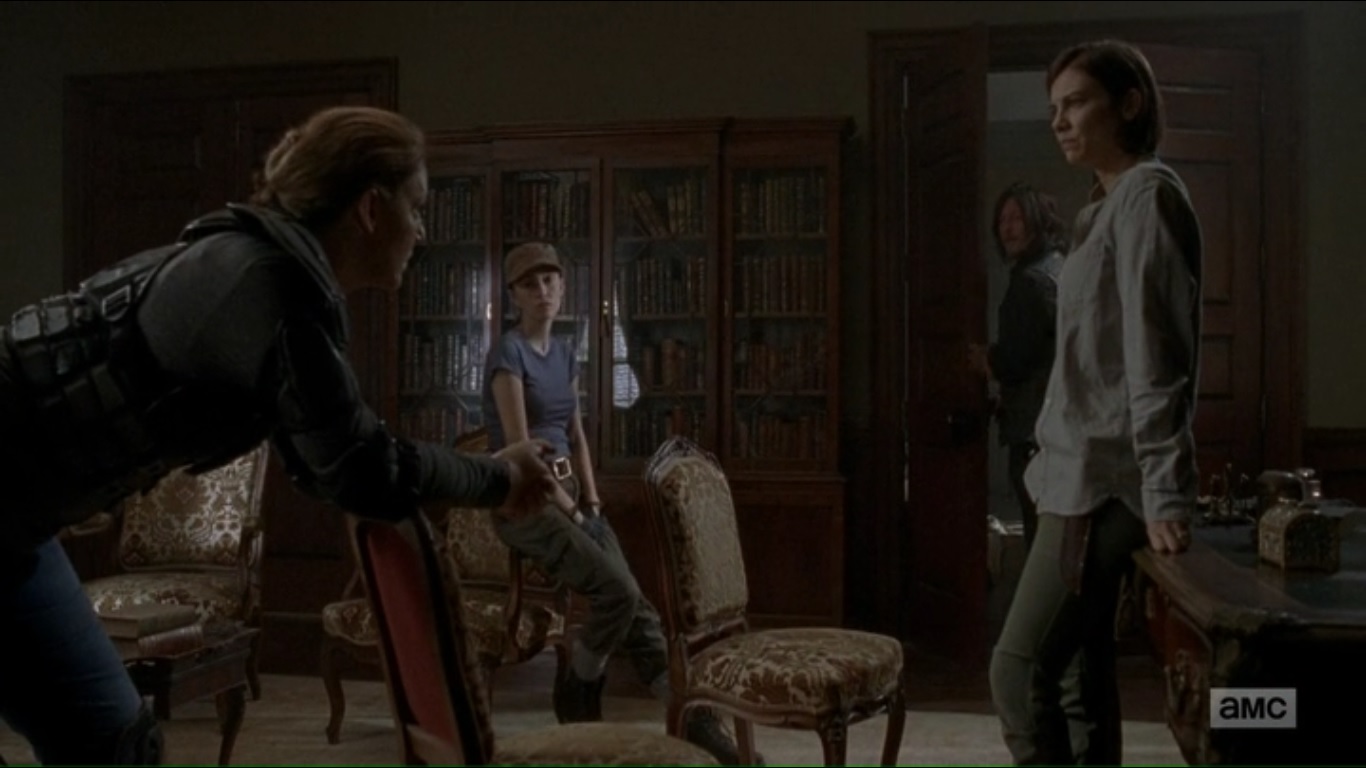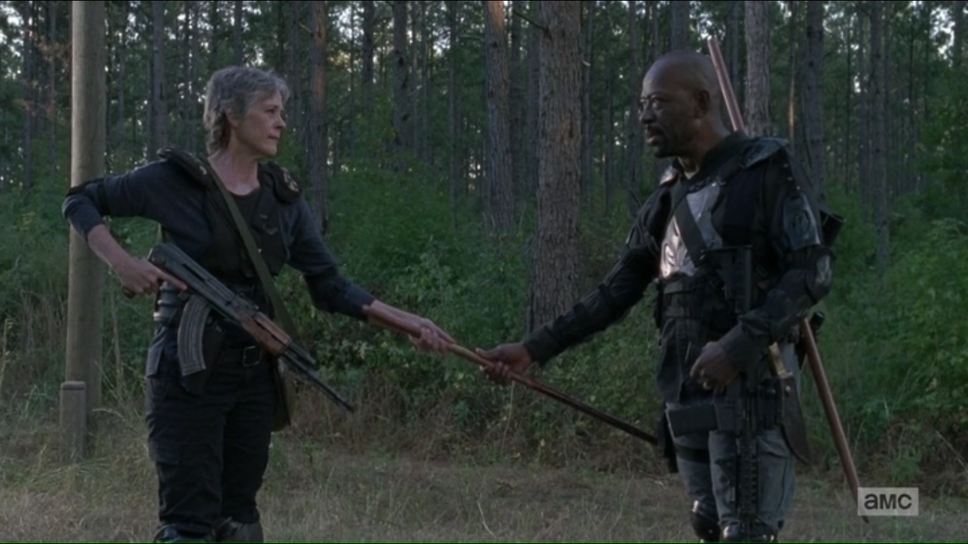 Carol finds herself in the position of bringing someone back when she tries to appeal to Morgan, and while she’s unable to get through to him, she does manage to rescue Henry in a nice moment. Though she couldn’t save Sophia and while she’s lost herself before, she won’t let that happen again. And at the very least, Henry won’t become another Sophia or Lizzie. Especially Lizzie.