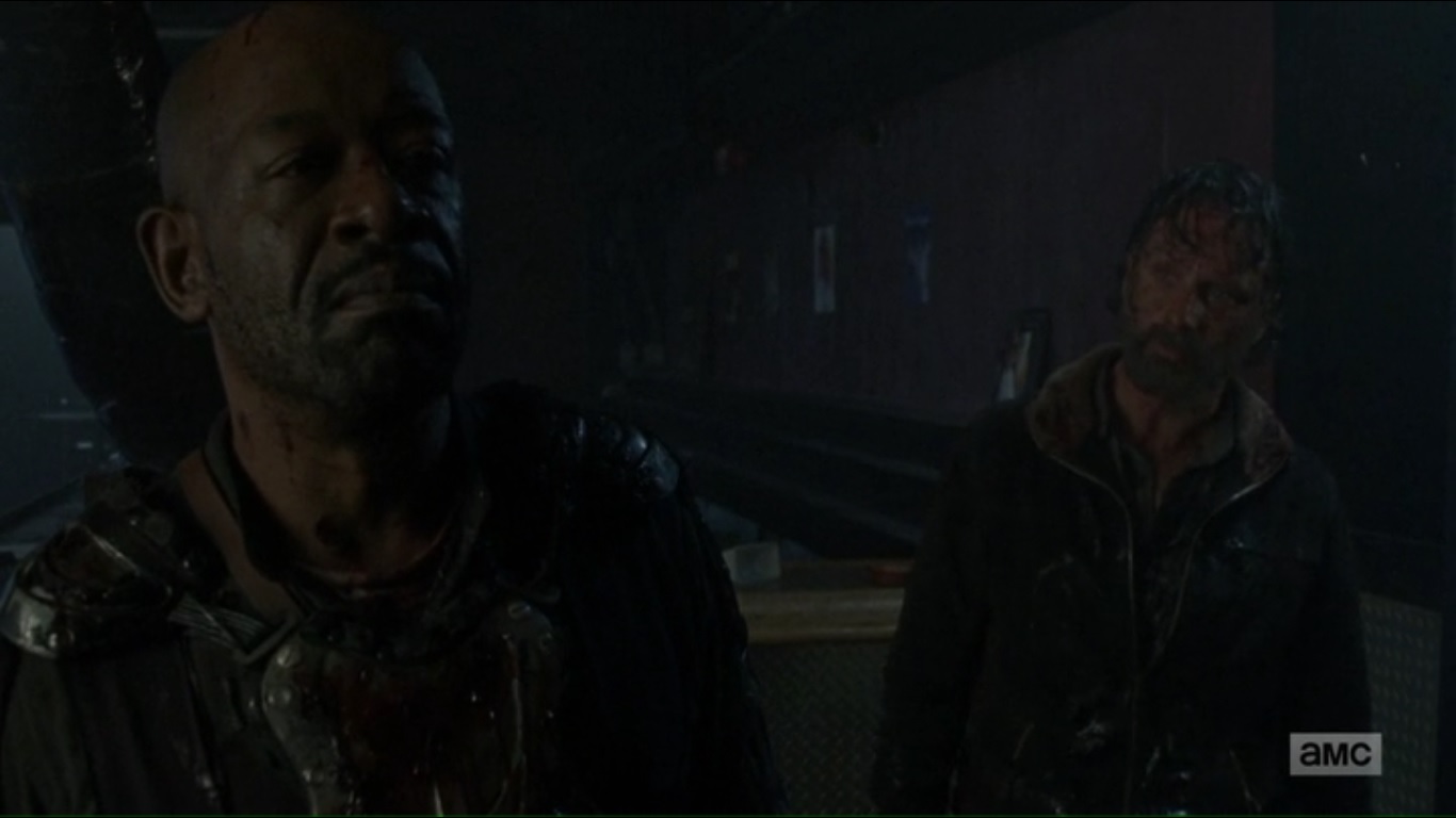 Rick approaches one of the dying Saviors and admits that he lied. He shoots and kills the Saviors just as Morgan approaches and again says that everybody turns. Rick acknowledges that Morgan saved him way back when, even though Morgan didn’t know him. He asks why Morgan saved him, since he had his son with him, and Morgan admits that it’s because his son was there that he helped Rick.