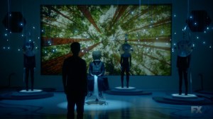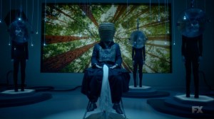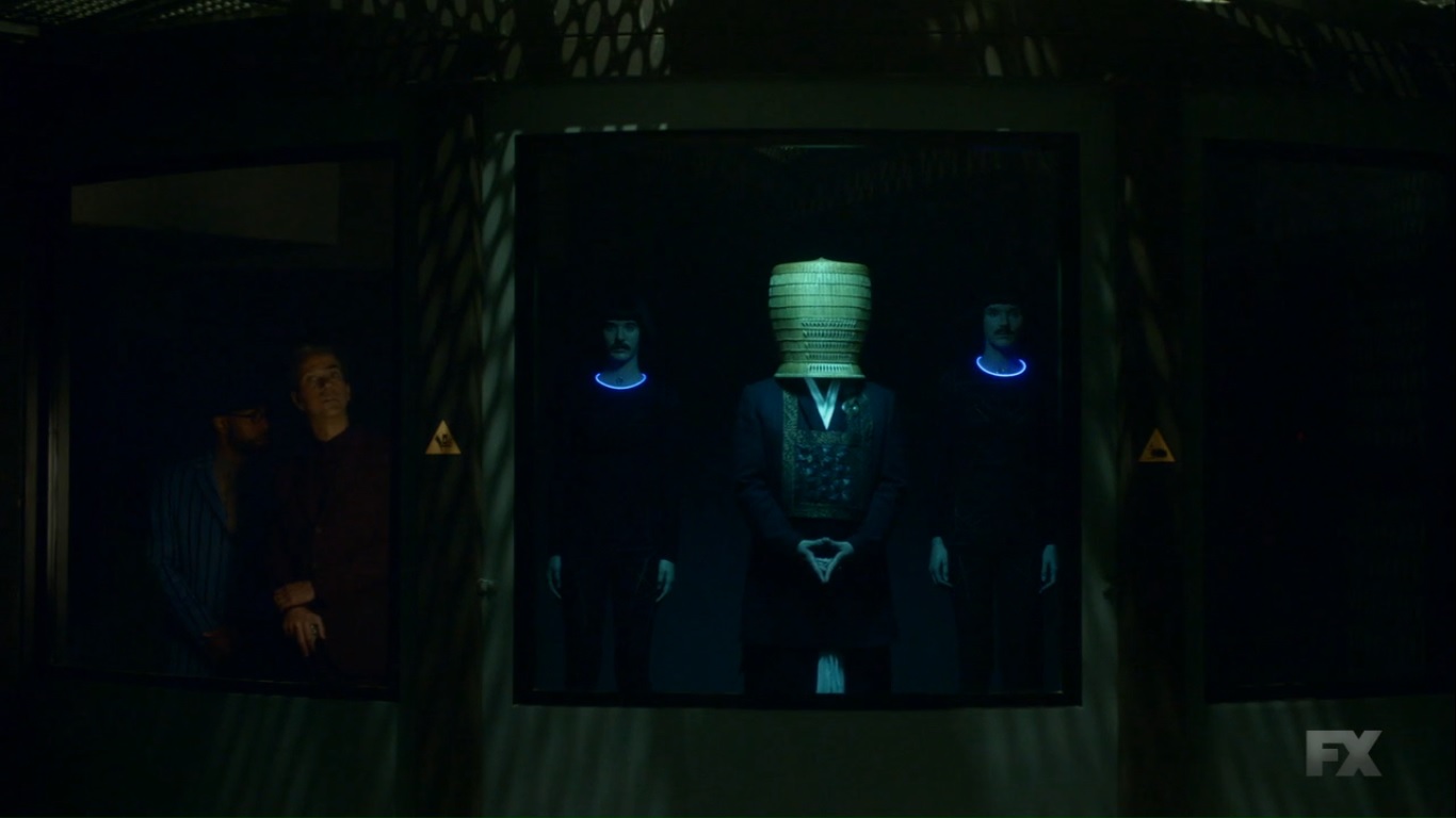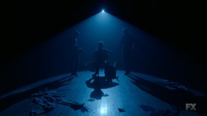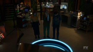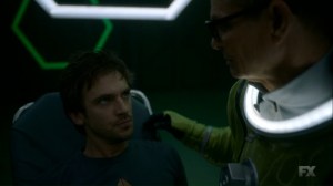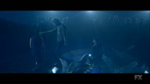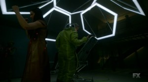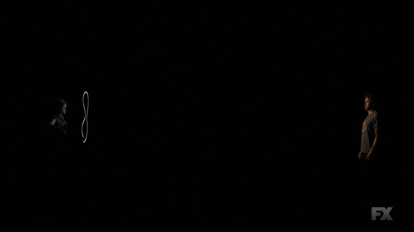We then catch up with Ptonomy and Clark, who have managed to locate David. Mr. Haller, though, just sits, bathed in a blue light, and talks about helping ‘them.’