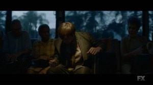 I’m all over the place here, so that’s where I’m transitioning to the look. Legion had a very sleek look in its first season and that continues here. From the color hues to the wardrobe to the strong cinematography, coupled with some superb direction from Tim Mielants, this is a gorgeous looking show and a very pretty premiere. Legion is more than an adaptation of comic book material- it’s pure art.