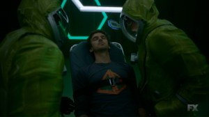 An incapacitated David is examined by Clark and another doctor, with Cary believing that David’s mind is locked in the astral plane. Watching the doctors are several folks, including Clark and Ptonomy and the master, who, through one of his colleagues, believes that if there’s any risk David is infected, he should be terminated.