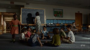 As David continues to soak in the chamber, Cary applies different frequencies, causing David to have glimpses of when he was in the orb that trapped him. As David’s mind wanders due to the frequencies, his mind goes all around Division Three and even flashes to some kids playing Duck, Duck, Goose…also, that creature from when Melanie got high is in the background…