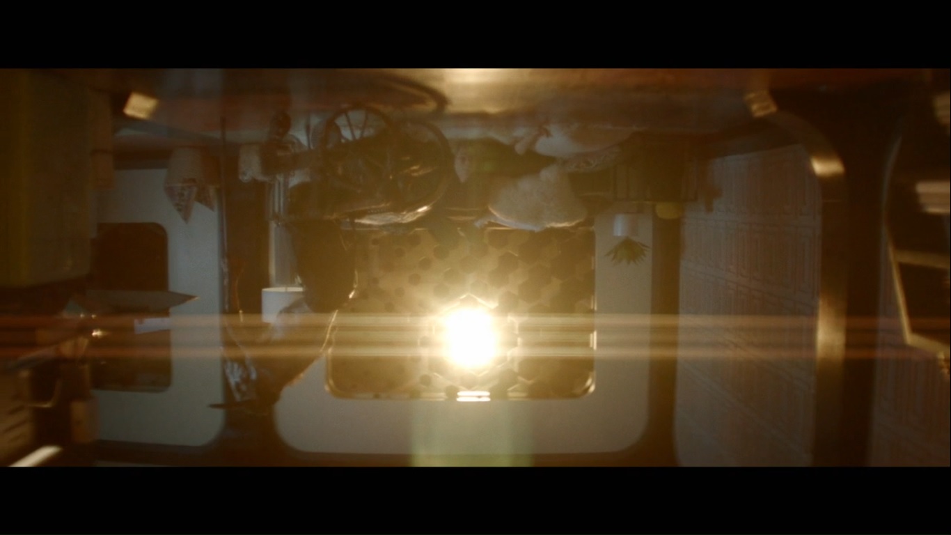 Elsewhere, while Cary tries to break David out of a chamber, Syd- wearing only one glove- cradles her cat, as she presumably swaps spots with it because she starts licking herself. People lick themselves. Kerry then enters and tells Syd…er, tells the cat, that David has been found. As for why Syd’s doing this…well, she’s practicing.