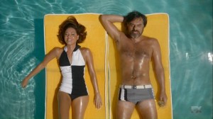 The season begins on a bright, sunny day at the pool as Lenny and Oliver get some serious sun. Lenny asks if today is Tuesday, but Oliver doesn’t want to have conversations about time. Instead, he notices that his drink is empty, but it gets replaced by…somebody that we don’t see. Lenny laughs, telling Oliver that they’re trapped.