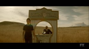 He winds up in that same open field when a bell rings. As David approaches and stares into the fortune teller’s crystal ball, he has a seat and rings the bell. And it’s here that he comes face to face with the Amahl Farouk himself, played by Navid Negahban. And he hears everything. Or perhaps he just read David’s mind. He tells David that the mind is a muscle and he has to work on it so it will become stronger.