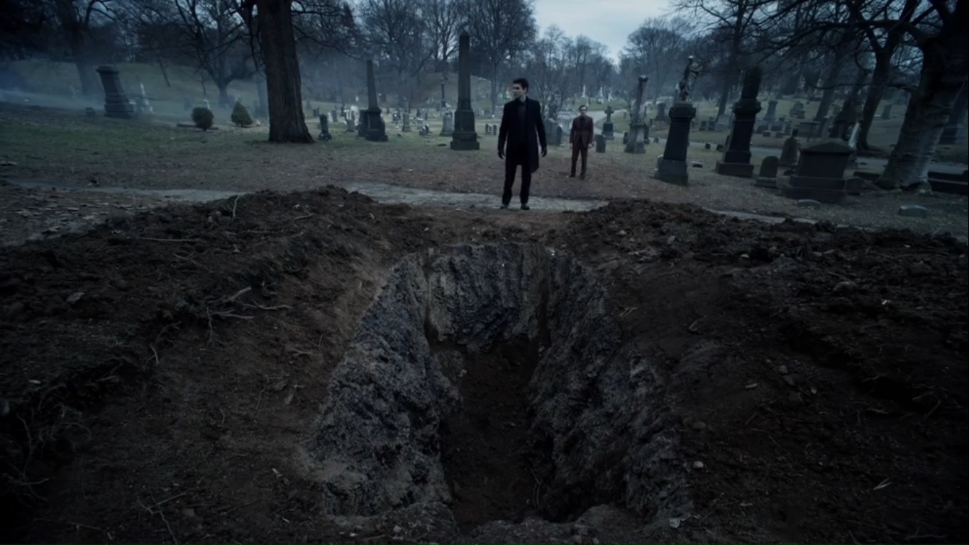 At a cemetery, Bruce calls Alfred, but gets no response, so he and Jeremiah continue towards Jerome’s grave site. Jeremiah is unsure that he can do this, but Bruce assures him that this will be quick. But when they arrive at the site, they find Jerome’s grave empty. Jeremiah, fearing the worst, flees.