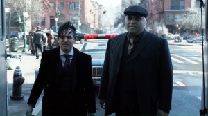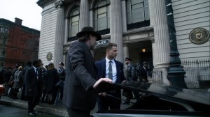 Jim calls Alfred, who tells him that Bruce is meeting with Jeremiah Valeska about the energy project. When Jim informs Alfred that Jerome’s crazies are at the precinct, Alfred prepares to leave and head to Jeremiah’s maze. At the same time, the mob starts banging on the doors of the precinct with Jerome’s coffin. The plan? Open up the armory. Jim figures this is a distraction while the followers hit the real target.