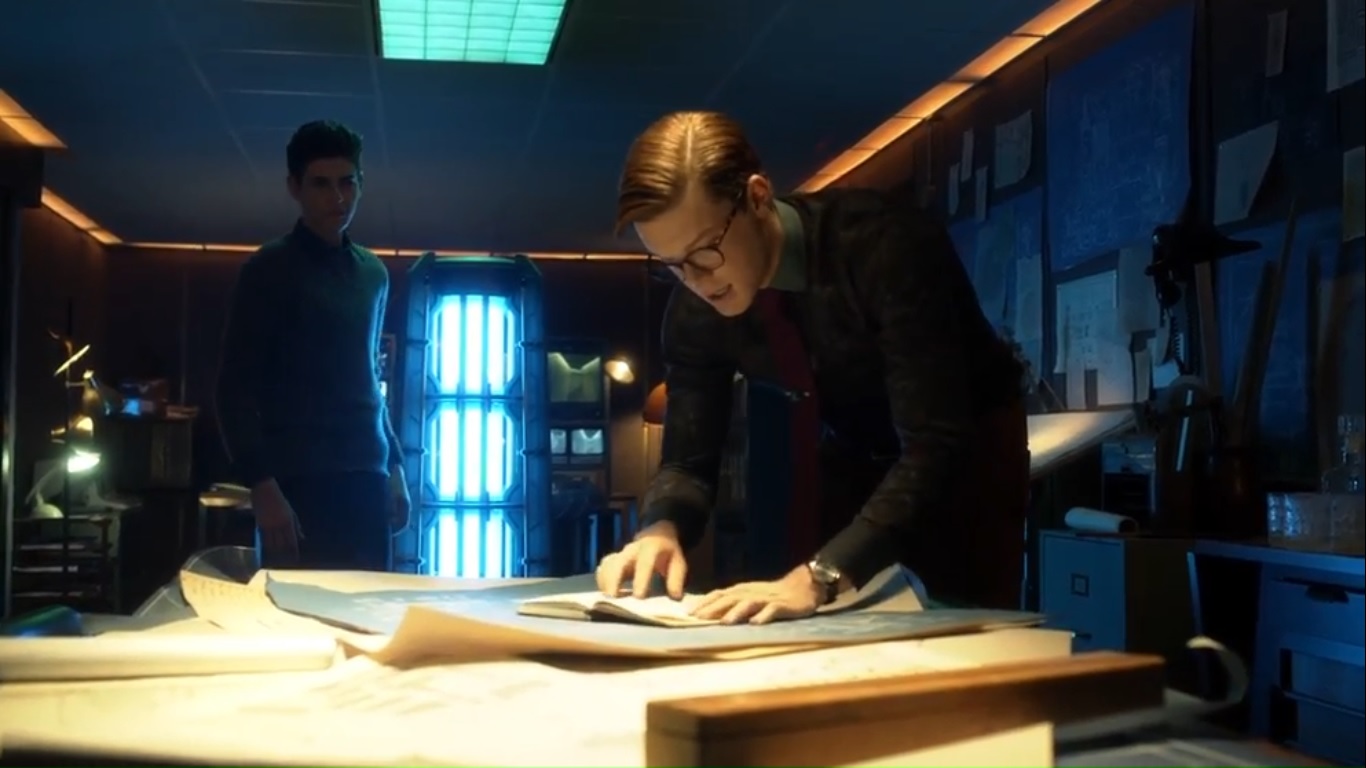 Bruce, meanwhile, speaks with Jeremiah about the generator, which is set for a demonstration. When Bruce kills the light, the generator lights up and powers the entire room. True, ambient energy. No cables or wires of any kind. This could even power all of Gotham. No one outside of Wayne Industries knows about this yet, so Jeremiah warns Bruce to keep an eye on the people close to him.